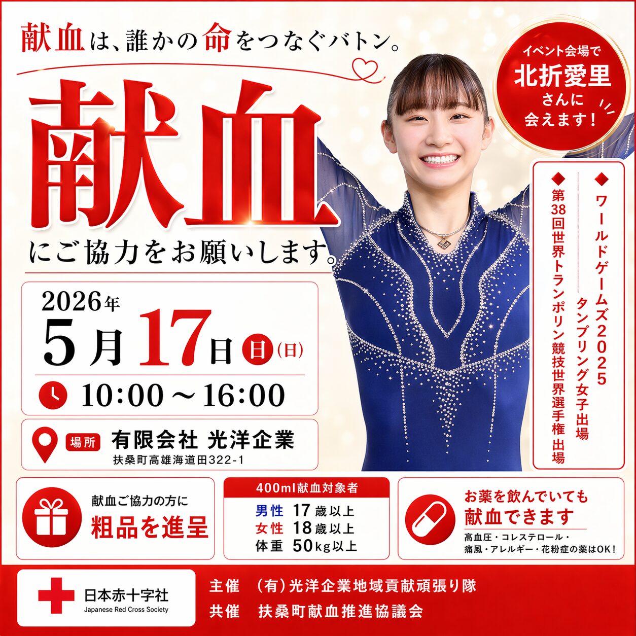 5月17日(日)、有限会社光洋企業にて行われる、献血に