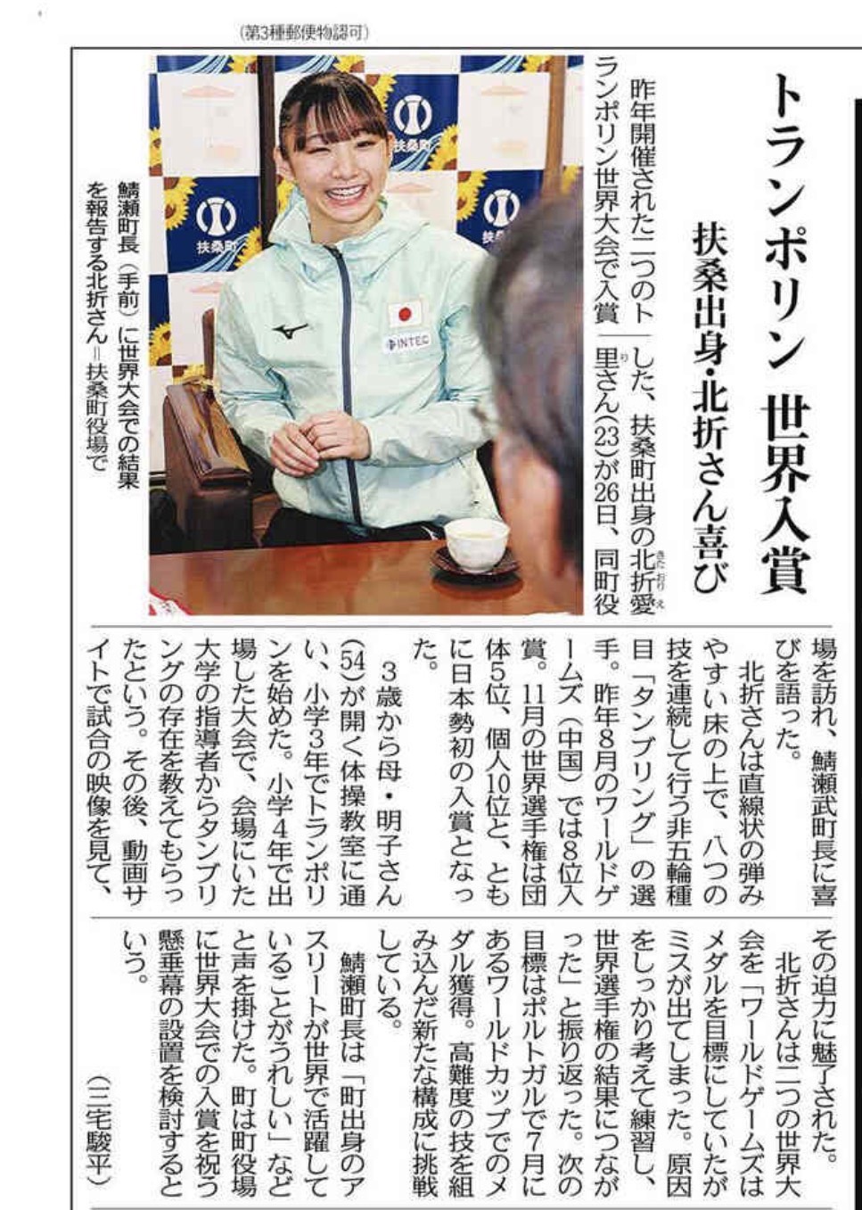 ホームトピックス扶桑町表敬訪問【光洋企業所属北折愛里】(新聞掲載)